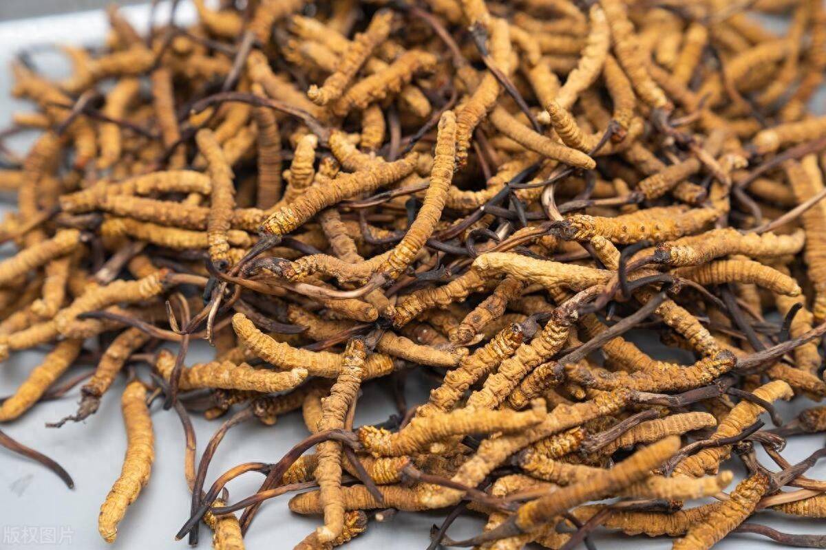 冬虫夏草的外观主要为黄色,身长约为6厘米,躯体顶部呈明显的黑褐色。冬虫夏草虽然曾一度成为资本市场谋利的工具,但从它的本质而言,其药用价值是不低的。我国传统医学认为冬虫夏草在补肾益肺方面具有很大功用,对于治疗肾虚精亏、阳痿遗精等症状具有明显效用。在人们眼中,冬虫夏草更是与鹿茸、人参等中草药并列齐驱。